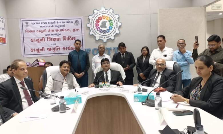सूरत।फेडरेशन ऑफ सूरत ट्रेड एंड टेक्सटाइल एसोसिएशन (FOSTTA) के कार्यालय में आज कानूनी जागरूकता सेमिनार का सफल आयोजन किया गया। सेमिनार का मुख्य उद्देश्य व्यापारियों को लोक अदालत की उपयोगिता, कॉमर्शियल सूट और चेक बाउंस प्रकरणों की सरल कार्यवाही के संबंध में जानकारी प्रदान करना था।