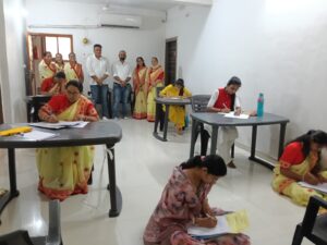 केंद्र व्यवस्थापिका कुसुम बोथरा ने मंगल पाठ सुनाकर प्रशिक्षकों को शुभकामनाएं दीं। सभा से उपाध्यक्ष संजय बोहरा एवं महिला मंडल मंत्री मधु झाबक ने भी प्रशिक्षकों को हार्दिक बधाई प्रेषित की। परीक्षा संचालन में सह मुख्य प्रशिक्षिका सीमा व सुमित्रा का विशेष सहयोग रहा।इस परीक्षा में विज्ञ स्तर से चार प्रशिक्षकों ने तथा विशारद स्तर से दो प्रशिक्षकों ने परीक्षा दी। निरीक्षण हेतु गुजरात अंचल के आंचलिक संयोजक प्रवीण मेडतवाल एवं सह संयोजक राजेश बाफना पधारे। पूरे समय निरीक्षण कार्य में संगीता राठौड़ सक्रिय रही।