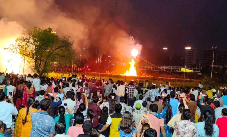 सूरत में 70 फीट ऊँचे रावण का दहन, आतिशबाजी देखने उमड़ा जनसैलाब
