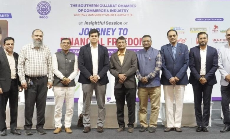 सूरत: द सदर्न गुजरात चैंबर ऑफ कॉमर्स एंड इंडस्ट्री द्वारा गुरुवार, 20 नवंबर 2025 को प्लैटिनम हॉल, सरसाणा, सूरत में ‘जर्नी टू फाइनेंशियल फ्रीडम’ विषय पर एक महत्वपूर्ण सत्र आयोजित किया गया। इस कार्यक्रम में बिजनेस कंसल्टेंट एवं सोशल आंत्रप्रेन्योर डॉ. धनंजय बांठिया ने उद्यमियों व प्रोफेशनल्स को आर्थिक स्वतंत्रता प्राप्त करने के व्यावहारिक उपाय बताए।