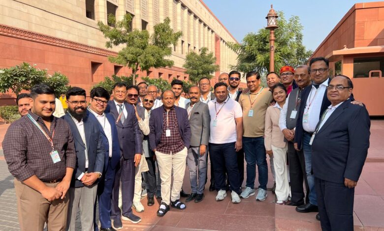 सूरत: दी साउदर्न गुजरात चैंबर ऑफ कॉमर्स एंड इंडस्ट्री के मानद मंत्री श्री बिजल जरीवाला, ऑल एग्जीबिशन्स चेयरमैन श्री किरण ठुम्मर एवं इंडस्ट्रियल टूर कमिटी चेयरमैन श्री अरविंद बाबावाला के नेतृत्व में चैंबर के सदस्यों के प्रतिनिधि मंडल ने हाल ही में 4 दिसंबर 2025 को नई दिल्ली में भारतीय लोकतंत्र के पवित्र मंदिर समान नए भारतीय संसद भवन का दौरा किया। यह दौरा सूरत के सांसद श्री मुकेशभाई दलाल के सहयोग एवं मार्गदर्शन में आयोजित किया गया था।