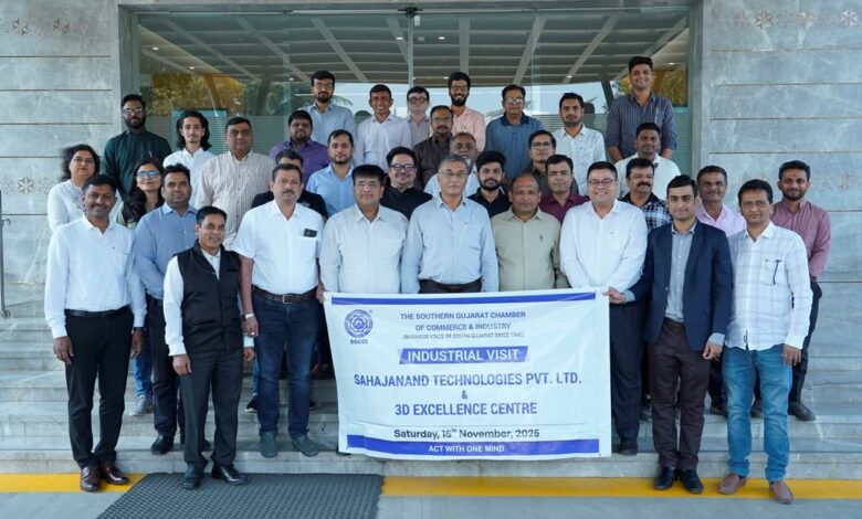 सूरत। द सदर्न गुजरात चेंबर ऑफ कॉमर्स एंड इंडस्ट्री द्वारा नवंबर-2025 माह में शहर के विभिन्न औद्योगिक प्रतिष्ठानों पर इंडस्ट्रियल विजीट का श्रृंखलाबद्ध आयोजन किया गया। इन विज़िट्स का उद्देश्य सदस्यों को नई तकनीकों, पर्यावरण–अनुकूल उत्पादन प्रणालियों और आधुनिक उद्योग प्रबंधन से रूबरू करवाना था।