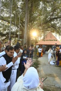 🌸30.12.2025, मंगलवार, चण्डावल, पाली (राजस्थान) :एक दिवसीय प्रवास कर और श्रद्धालुओं को आध्यात्मिकता से भावित कर मंगलवार को प्रातःकाल की मंगल बेला में जैन श्वेताम्बर तेरापंथ धर्मसंघ के ग्यारहवें अनुशास्ता, अखण्ड परिव्राजक आचार्यश्री महाश्रमणजी अपनी धवल सेना के साथ बगड़ी नगर से गतिमान हुए। आचार्यश्री ने बगड़ी नगर के उस प्राचीन बड़ के पेड़ के पास भी पधारे जहां आचार्यश्री भिक्षु स्वामी ने द्रव्य दीक्षा ग्रहण की थी। बगड़ीवासियों ने अपने आराध्य के समक्ष अपने कृतज्ञ भाव अर्पित किए। जनता को मंगल आशीष प्रदान करते हुए अगले गंतव्य की ओर बढ़ चले। सर्दी के मौसम में भी आचार्यश्री की पदयात्रा लोगों को प्रेरणा प्रदान कर रही थी। आज पाली जिले में आचार्यश्री की इस बार की यात्रा का अंतिम दिवस भी था। लगभग 27 दिनों की यह यात्रा में जिले में मानों आध्यात्मिकता का प्रभाव बना रहा।