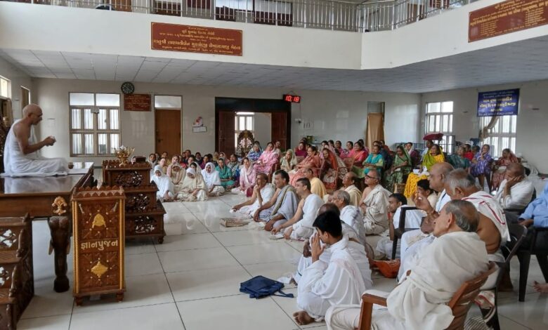 सूरत। पीपलोद–डुमस रोड स्थित ऑडी कार शोरूम के पीछे अवस्थित श्री शांतिनाथ श्वे. मू. पू. तपागच्छ जैन संघ में आयोजित ‘सत्संग सप्ताह’ के अंतर्गत चल रही प्रवचनमाला में बड़ी संख्या में श्रद्धालु सत्संग का रसास्वादन कर रहे हैं।