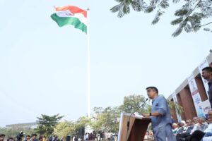 उपमुख्यमंत्री हर्ष संघवी ने किया ध्वजारोहण, देशभक्ति के नारों से गूंजा परिसर
