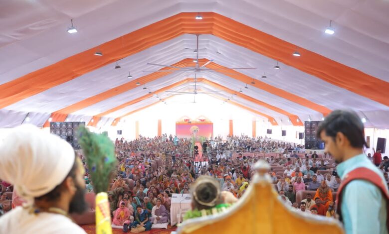 कथा के छठे दिन व्यासपीठ से परम गौ उपासक, करुणामय, वेदज्ञ एवं निर्मल हृदय अनंत श्रीविभूषित श्रीमज्जगद्गुरु द्वाराचार्य अग्र पीठाधीश्वर एवं मलूक पीठाधीश्वर स्वामी डॉ. श्री राजेंद्र दास देवाचार्य जी महाराज (श्री रैवासा-वृंदावन धाम) ने श्रीमद्भागवत महापुराण के दशम स्कंध के 22वें अध्याय में वर्णित चीरहरण लीला का अत्यंत भावपूर्ण एवं सारगर्भित वर्णन किया। इस दौरान “कनक भवन दरवाजे बढ़े रहो, जहां सियाराम विराजे पड़े रहो…” जैसे भजनों पर पूरा पंडाल भक्तिरस से ओत-प्रोत हो उठा और श्रद्धालु भावविभोर होकर भक्ति में लीन दिखाई दिए।