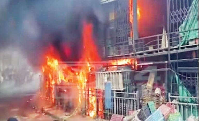सरदार मार्केट के पास फल बाजार के शेड में अचानक आग, खाली बॉक्स और प्लास्टिक क्रेट जले
