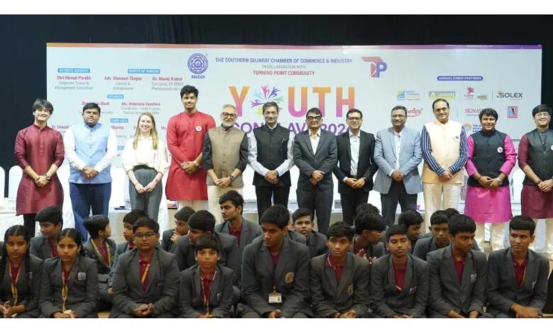 सूरत। सदर्न गुजरात चैंबर ऑफ कॉमर्स एंड इंडस्ट्री (SGCCI) और टर्निंग पॉइंट कम्युनिटी के संयुक्त तत्वावधान में 31 जनवरी 2026 को सरसाना स्थित प्लैटिनम हॉल में ‘यूथ कॉन्क्लेव 2026’ का भव्य आयोजन किया गया। कार्यक्रम में बड़ी संख्या में युवाओं और विद्यार्थियों ने भाग लिया।चैंबर के अध्यक्ष निखिल मद्रासी ने स्वागत भाषण में बताया कि कॉन्क्लेव की थीम “आइडिया जगाना – लीडर्स बनाना – देश बनाना” रही, जिसका उद्देश्य युवाओं में नवाचार, नेतृत्व क्षमता और जिम्मेदार नागरिक बनने की भावना विकसित करना है।कार्यक्रम में विशेष अतिथि के रूप में इंटास फार्मास्युटिकल्स लिमिटेड के एग्जीक्यूटिव वाइस प्रेसिडेंट डॉ. मनोज कुमार ने कहा कि सफलता के लिए स्पष्ट लक्ष्य, निरंतर सीखने की आदत और सोचने-लिखने-पढ़ने की प्रक्रिया बेहद आवश्यक है। उन्होंने युवाओं को अपने पैशन के साथ उसकी व्यावहारिक और आर्थिक उपयोगिता समझने की सलाह दी।