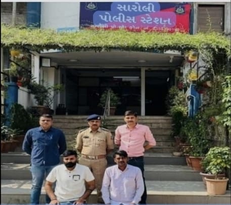 सूरत।सारोली क्षेत्र के एक कपड़ा व्यापारी से करीब ₹39.93 लाख की ठगी के मामले में सारोली पुलिस ने अहमदाबाद से दो आरोपियों को गिरफ्तार कर लिया है, जबकि तीन आरोपी अभी फरार हैं। पुलिस ने तकनीकी सर्विलांस और मानव स्रोतों की मदद से यह कार्रवाई की।