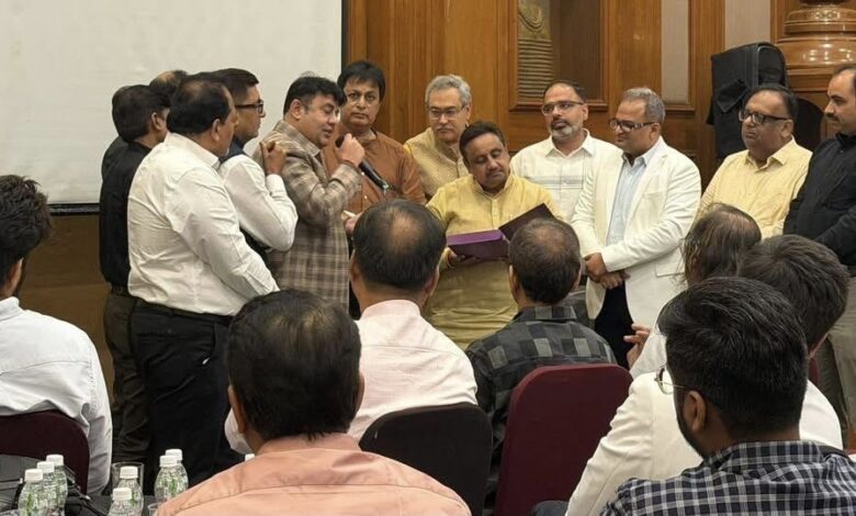 अहमदाबाद।अहमदाबाद के प्रतिष्ठित द उम्मेद होटल में आगामी भारतीय व्यापार महोत्सव (BVM) 2026 की तैयारियों को लेकर टेक्सटाइल उद्योग के प्रमुख व्यापारियों, निर्माताओं और उद्यमियों की एक महत्वपूर्ण रणनीतिक बैठक आयोजित की गई। इस उच्चस्तरीय बैठक में देशभर के 100 से अधिक प्रमुख मैन्युफैक्चरर्स एवं थोक व्यापारियों ने भाग लेकर महोत्सव में सक्रिय सहभागिता का संकल्प लिया। बैठक में भारतीय टेक्सटाइल उद्योग को राष्ट्रीय एवं अंतरराष्ट्रीय स्तर पर नई पहचान दिलाने, निर्यात बढ़ाने और व्यापारिक नेटवर्क को मजबूत बनाने पर विस्तार से चर्चा की गई।