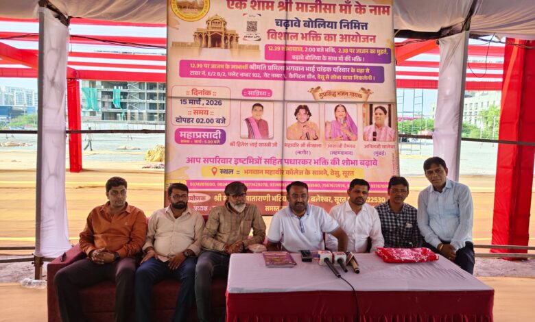 सूरत। माजीसा माता रानी भटियाणी ट्रस्ट की ओर से मीडिया बंधुओं का हार्दिक स्वागत करते हुए बड़े हर्ष के साथ सूचित किया गया है कि पलसाना-बलेश्वर स्थित श्री माजीसा धाम का निर्माण कार्य तेजी से प्रगति कर रहा है और मंदिर निर्माण लगभग 80 प्रतिशत पूर्ण हो चुका है। इसी क्रम में मंदिर निर्माण के लिए श्रद्धालुओं की सहभागिता और भक्ति भाव को बढ़ाने के उद्देश्य से “एक शाम श्री मां के नाम” कार्यक्रम एवं चढ़ावे की बोलियों के साथ विशाल भक्ति संध्या का आयोजन किया जा रहा है।