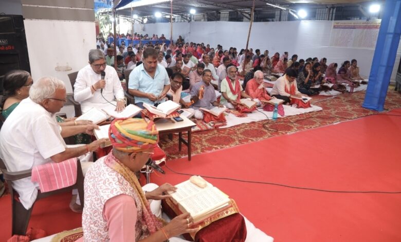 सूरत। श्री रामायण प्रचार समिति, सूरत द्वारा गोस्वामी तुलसीदास जी रचित श्री रामचरितमानस नवाह्न पारायण पाठ का 27वां आयोजन परवत पाटिया स्थित शुभम् हाइट्स-1 परिसर में श्रद्धा एवं भक्ति भाव के साथ आयोजित किया जा रहा है। कार्यक्रम में प्रतिदिन प्रातः 6 बजे शुभ पूजा के साथ शुरुआत होती है, वहीं सुबह 7 बजे से 10:30 बजे तक रामचरितमानस की चौपाइयों का संगीतमय सामूहिक गायन किया जाता है।