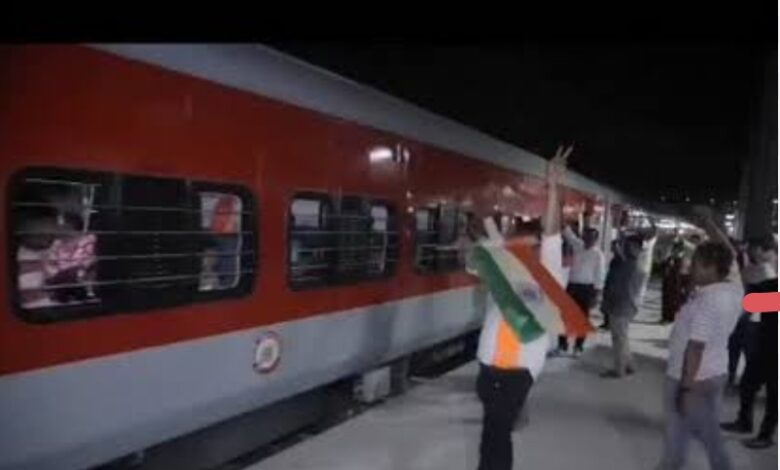 स्टेशन पर रवाना होते समय यात्रियों के हाथों में तिरंगा झंडा था और “वंदे मातरम्” व “जय श्रीराम” के नारों से पूरा माहौल गूंज उठा।