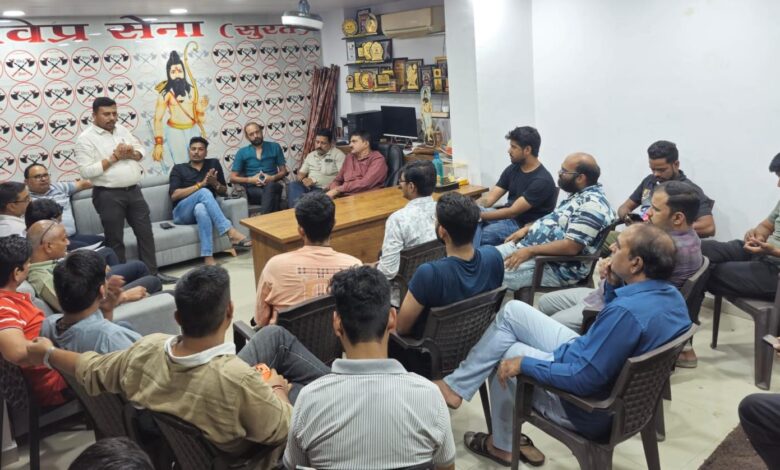 सूरत। भगवान परशुराम जन्मोत्सव के पावन अवसर पर विप्र सेना, सूरत द्वारा 19 अप्रैल को विशाल महारक्तदान शिविर का आयोजन किया जा रहा है। इस आयोजन को सफल बनाने के लिए विप्र सेना कार्यालय, राज पैलेस, शनि मंदिर, गोडादरा में पदाधिकारियों की महत्वपूर्ण बैठक आयोजित की गई।
