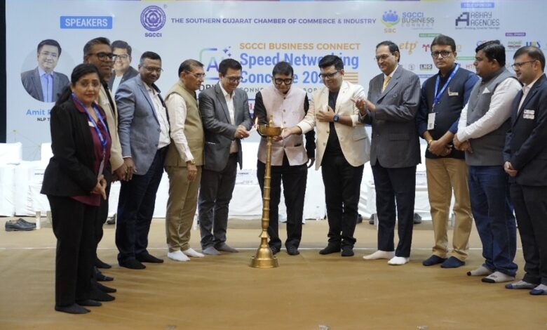 सूरत -साउथ गुजरात चेंबर ऑफ कॉमर्स एंड इंडस्ट्री (SGCCI) द्वारा एआई आधारित ‘स्पीड बिजनेस नेटवर्किंग कॉन्क्लेव’ का आयोजन किया गया। इसमें सूरत सहित गांधीनगर, गांधीधाम, वडोदरा और अहमदाबाद से 600 से अधिक उद्यमियों ने भाग लिया।