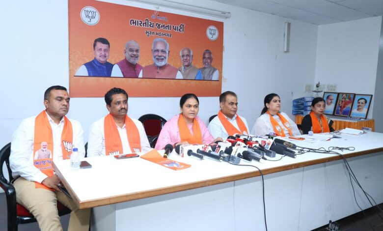इस प्रेस कॉन्फ्रेंस में श्रीमती हेमालीबेन बोगावाला (सूरत शहर महिला अध्यक्ष), भाजपा महामंत्री श्री करशनभाई, श्री दुर्गा प्रसाद पांडे सहित कई कार्यकर्ता उपस्थित रहे।