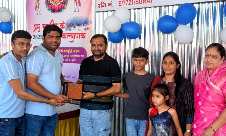 सूरत। भगवान महावीर स्वामी के 2625वें जन्म कल्याणक के पावन अवसर पर जैन नवयुवक मंडल (जैनम), सूरत द्वारा श्री लोकसेवा मंदबुद्धि आश्रम में निर्मित शेड (डोम) का सेवा समर्पण समारोह श्रद्धा, उत्साह एवं सेवा भावना के वातावरण में सम्पन्न हुआ। कार्यक्रम समाज सेवा, करुणा और मानवीय संवेदनाओं का प्रेरक उदाहरण बना।