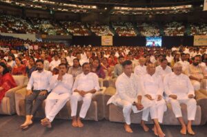 इंडोर स्टेडियम में आयोजित कार्यक्रम में गच्छाधिपति, आचार्य भगवंत, साध्वी भगवंत सहित चतुर्विध संघ की पावन निश्रा में आयोजन संपन्न हुआ। शहर के विभिन्न जैन संघों, समाज के अग्रणियों, JITO पदाधिकारियों और बड़ी संख्या में समाजजनों की उपस्थिति ने कार्यक्रम को ऐतिहासिक स्वरूप प्रदान किया।