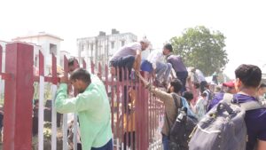 मुसाफिरों की संख्या के मुकाबले ट्रेनों की कमी के कारण उधना रेलवे स्टेशन का माहौल रणभूमि जैसा बन गया। करीब 6 घंटे तक भूखे-प्यासे लंबी लाइनों में खड़े रहने के बावजूद एंट्री नहीं मिलने से वहां अफरातफरी मच गई। कई श्रमिक रेलिंग कूदकर अंदर जाने की कोशिश करते नजर आए, जिनमें महिलाएं भी शामिल थीं।